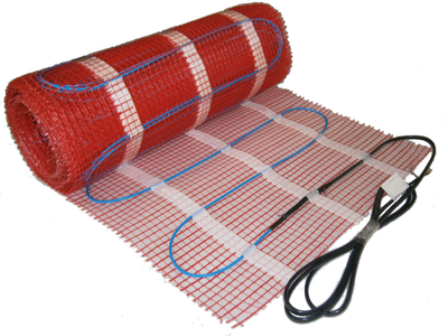 Здесь нагревательный кабель крепится на специальной сетке. Огромный плюс это вида пола – можно использовать любой вид напольного покрытия без «вмешательства» цементной стяжки. Например, сразу после установки стелить ламинат или укладывать керамическую плитку. Вы просто расстилаете готовый мат и подключаете к розетке. И радуйтесь своему уюту. Этот способ не «съедает» высоту пола, но довольно дорог в установке.