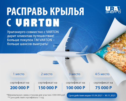 По итогам акции будут выбраны 5 клиентов с максимальными отгрузками по ТМ Varton и они получат сертификаты на путешествие!