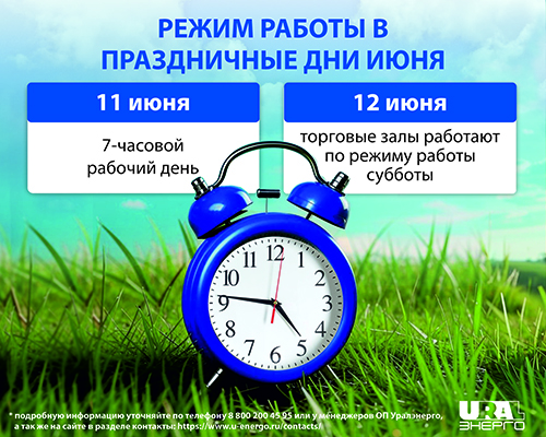 РЕЖИМ РАБОТЫ УРАЛЭНЕРГО В ПРАЗДНИЧНЫЕ ДНИ ИЮНЯ: