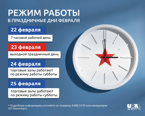 24 февраля - 25 февраля - рабочие дни по режиму работы субботы для торговых залов.
